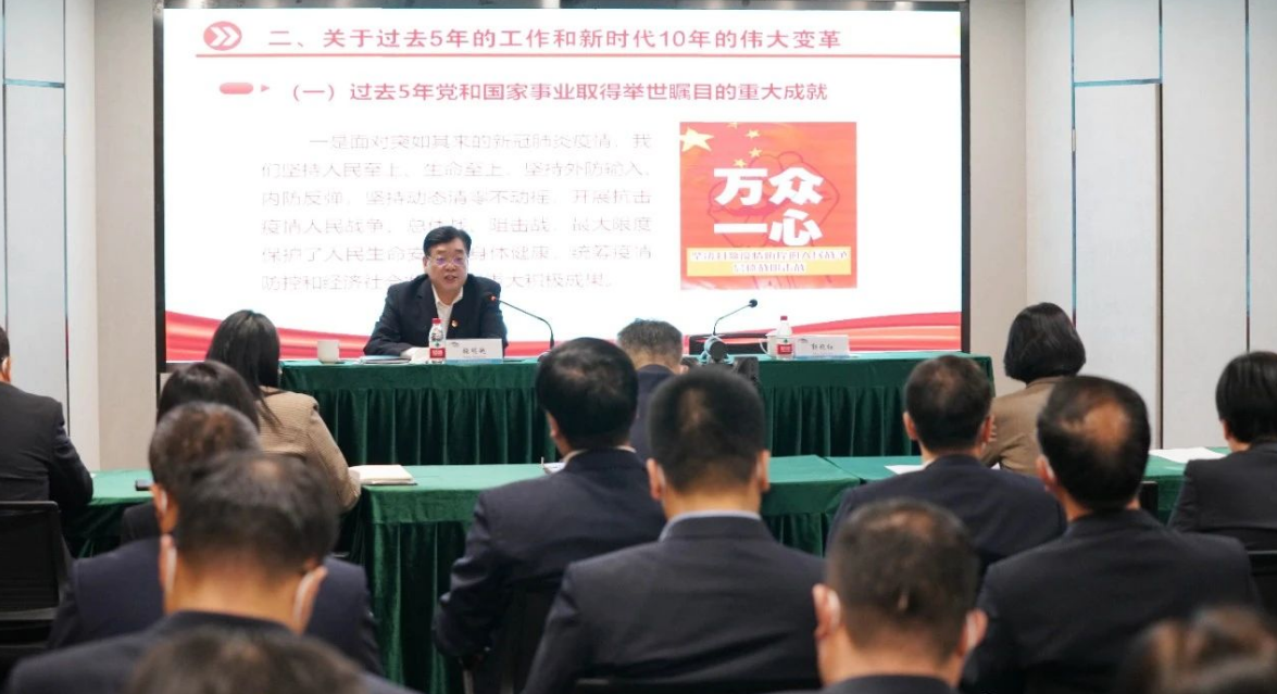 會(huì)上,張明超圍繞黨的二十大的主題和主要成果、過(guò)去5年的工作和新時(shí)代10年的偉大變革、馬克思主義中國(guó)化時(shí)代化、中國(guó)式現(xiàn)代化、全面建設(shè)社會(huì)主義現(xiàn)代化國(guó)家的目標(biāo)任務(wù)、堅(jiān)持黨的全面領(lǐng)導(dǎo)和全面從嚴(yán)治黨等方面,對(duì)黨的二十大精神進(jìn)行了系統(tǒng)宣講,并對(duì)學(xué)習(xí)領(lǐng)會(huì)習(xí)近平總書記視察延安和安陽(yáng)重要講話精神作了深入闡釋。