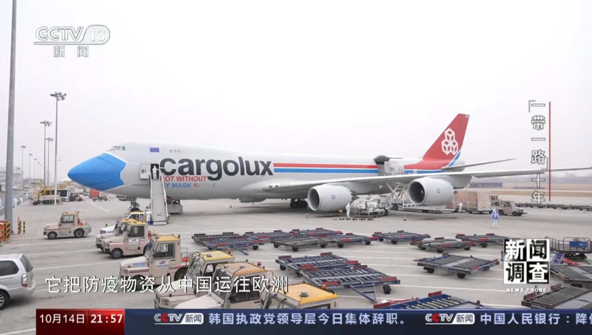 隨后,央視《新聞?wù){(diào)查》于10月14日播出“一帶一路十年 雙向奔赴 絲路同行”。報(bào)道再次把鏡頭給到河南,同樣選用了鄭盧“空中絲綢之路”案例。理查德·福森在節(jié)目中對(duì)雙方的合作成績(jī)給予肯定,他介紹說,通過這條鄭州到盧森堡的航線,盧森堡貨航能夠輻射整個(gè)歐洲,可以把貨物送到歐洲的125個(gè)站點(diǎn);同時(shí)也可以從新鄭國(guó)際機(jī)場(chǎng)飛往美國(guó)芝加哥和其他的分撥中心,從那里通過貨車陸運(yùn)至少可以去往美國(guó)的200多個(gè)站點(diǎn)。而湯姆·維斯格伯認(rèn)為,如果沒有河南,盧森堡貨航很難為客戶提供完美的方案。報(bào)道回顧了豫盧攜手抗疫、共同推動(dòng)可持續(xù)航空燃料加注和文化融通等事例,并認(rèn)為,從2013年河南航投與盧森堡貨航合作以來,雙方攜手同行,帶來的不僅僅是利潤(rùn),還有對(duì)彼此堅(jiān)定的信任。