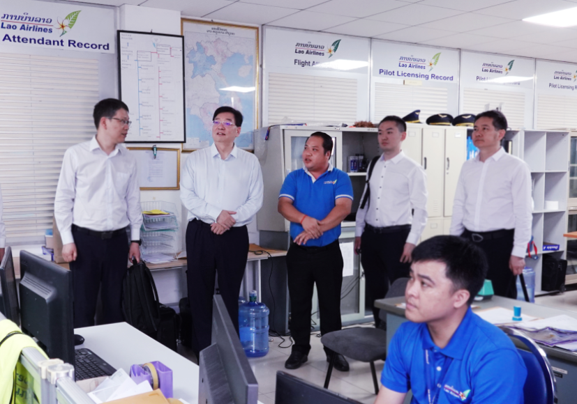 張明超在萬象訪問了老撾航空公司,與其總經(jīng)理坎拉·蓬馬萬就航空客貨運(yùn)、航空培訓(xùn)、飛機(jī)租賃、航空救援等業(yè)務(wù)進(jìn)行了廣泛交流。同時,實(shí)地調(diào)研了萬象機(jī)場,考察了地面服務(wù)保障措施、航空物流貨站、飛機(jī)維修等業(yè)務(wù),與管理層交流合作意向,深入探討中豫航空與老撾民航產(chǎn)業(yè)的合作潛力,謀劃中原龍浩航空開通萬象—鄭州貨運(yùn)航線。