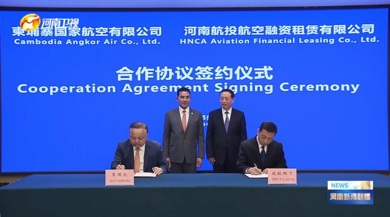 11月2日上午,河南航投航空融資租賃有限公司(以下簡稱航投租賃)與柬埔寨國家航空公司簽署融資租賃合作協(xié)議,開展跨境飛機租賃業(yè)務(wù)。省委常委、常務(wù)副省長孫守剛與柬埔寨民航國務(wù)秘書處大臣兼柬埔寨國家航空公司董事會主席毛哈萬納共同見證協(xié)議簽署。