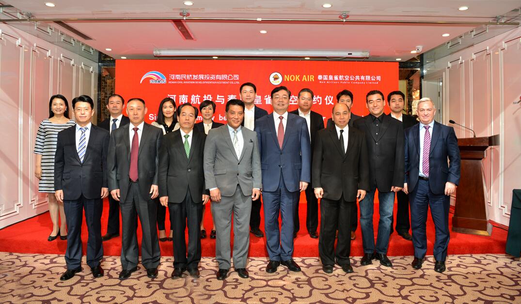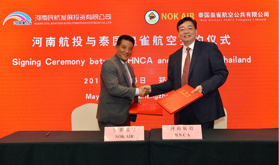 5月15日,河南航投董事長、黨委書記張明超與泰國皇雀航空首席執(zhí)行官帕提?薩若新,分別代表雙方簽署合作諒解備忘錄。河南航投總經理、黨委副書記、副董事長劉建葆及領導班子其他成員出席簽約儀式。