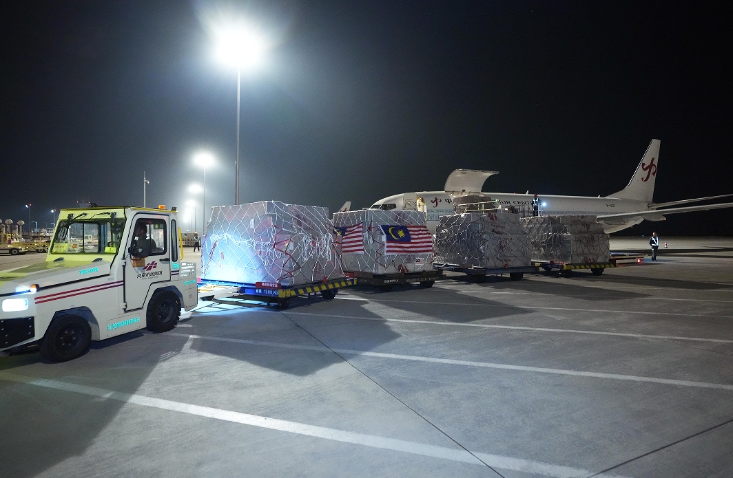 8月25日上午,吉隆坡-鄭州鮮食榴蓮首航接機(jī)儀式在鄭州機(jī)場(chǎng)舉行,馬來(lái)西亞首批鮮食榴蓮進(jìn)入中國(guó)市場(chǎng),中馬航空貨運(yùn)樞紐項(xiàng)目加速推進(jìn)。中豫航空集團(tuán)黨委書(shū)記、董事長(zhǎng)張明超,總經(jīng)理、黨委副書(shū)記、副董事長(zhǎng)柳建民;馬來(lái)西亞駐華大使館工作人員,馬來(lái)西亞榴蓮廠商公會(huì)代表和榴蓮貿(mào)易供應(yīng)鏈企業(yè)代表參加了儀式。