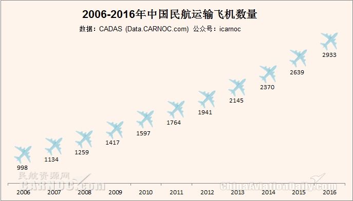 2016國(guó)內(nèi)民航機(jī)隊(duì)達(dá)2933架 全年引進(jìn)369架