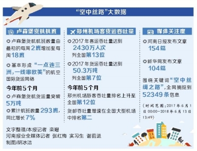 2017年6月14日,國(guó)家主席習(xí)近平在會(huì)見盧森堡首相貝泰爾時(shí),明確提出要深化雙方在“一帶一路”建設(shè)框架內(nèi)金融、產(chǎn)能等合作,中方支持建設(shè)鄭州—盧森堡“空中絲綢之路”。